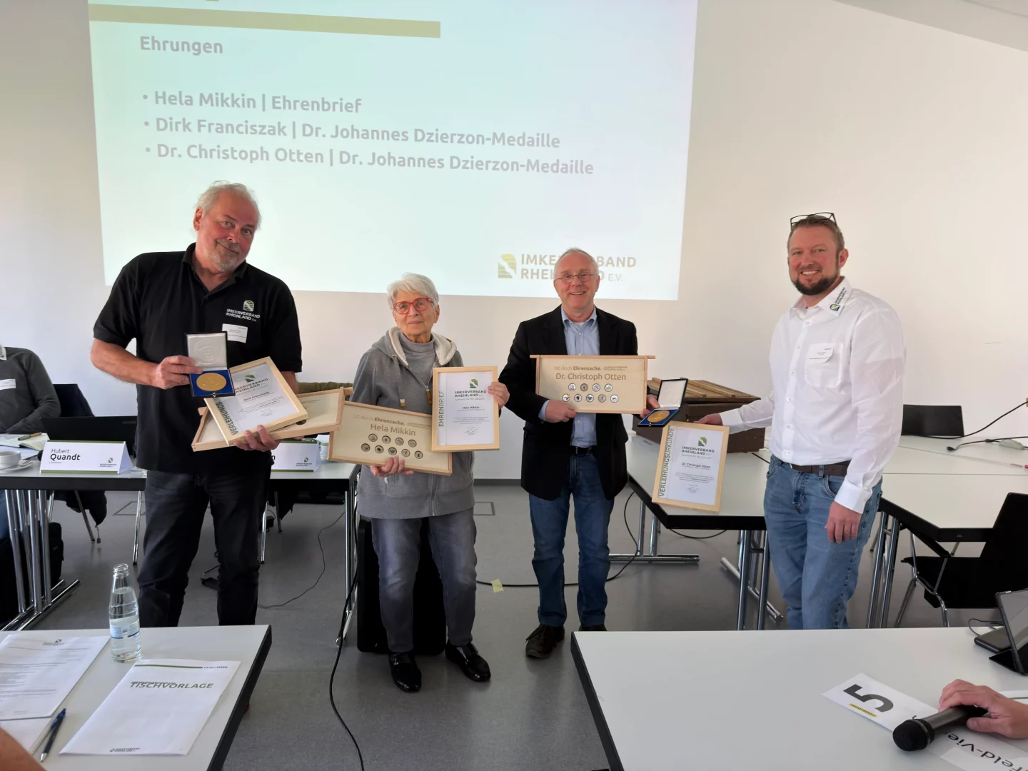 Der Imkerverband Rheinland e.V. hat seine jährliche Vertreterversammlung in diesem Jahr in Essen im Bildungszentrum Gartenbau Essen der Landwirtschaftskammer Nordrhein-Westfalen abgehalten. Da keine Vorstandswahlen auf dem Programm standen, war Zeit für besonders ehrenvolle Aufgaben. Der 1. Vorsitzende Tobias Heinen ehrte drei hochverdiente Mitglieder des Imkerverband Rheinland.